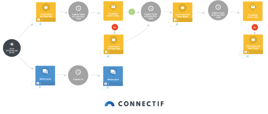 ➡️ Por todo ello, en Connectif hemos preparado un pack de workflows especial para la campaña navideña, con cinco plantillas disponibles y accionables para todos nuestros clientes. El objetivo es ayudarles a implementar estrategias avanzadas de manera sencilla, para lograr (¡o superar!) sus objetivos de venta en una de las campañas anuales más importantes.