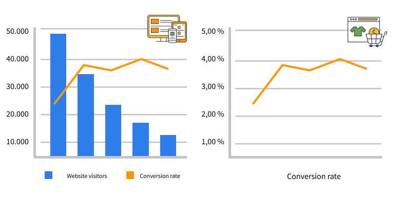 For instance, imagine that a company states that their conversion rate has gone up by 43% over the last year, but omits that website visits have decreased by 73% and orders have dropped by 61% during the same period.