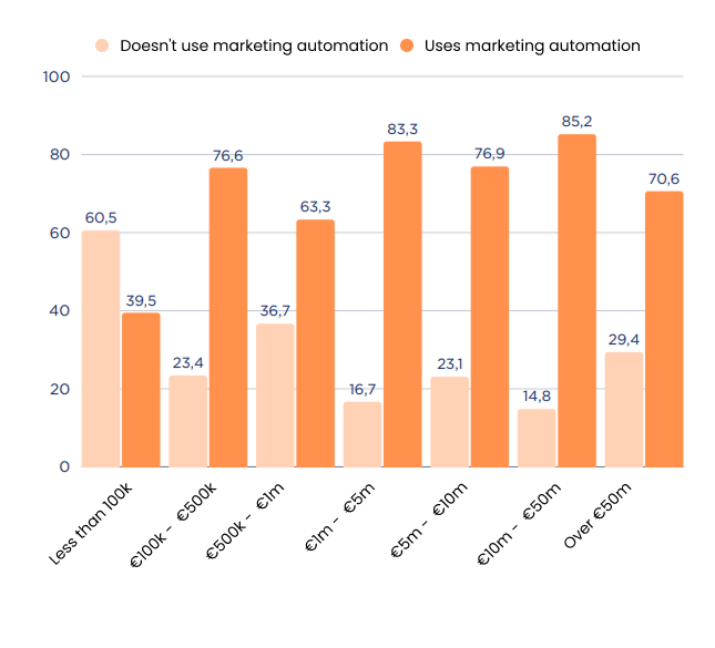 The data says it all: 85.2% of companies with a turnover between 10 and 50 million already use marketing automation. And among those exceeding 50 million, 70.6% also have integrated automations.