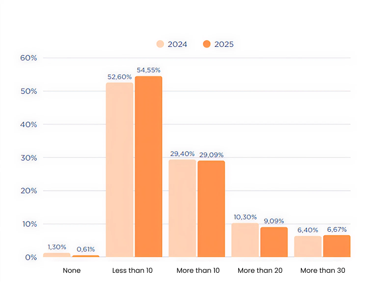 The number of active workflows remains a foolproof barometer. Using marketing automation is not the same as using it well. And the numbers make it clear: more than half of eCommerce businesses still work with fewer than 10 active flows, and only 6.7% have passed the 30 mark.
