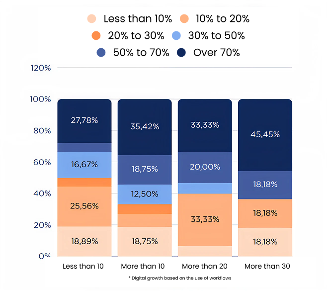This year, only 30.9% of companies will spend more than 10% of their digital budget on automation. But here’s the interesting twist: many of those with lower investments in automation are already generating more than 10% of their sales as a result of it.
