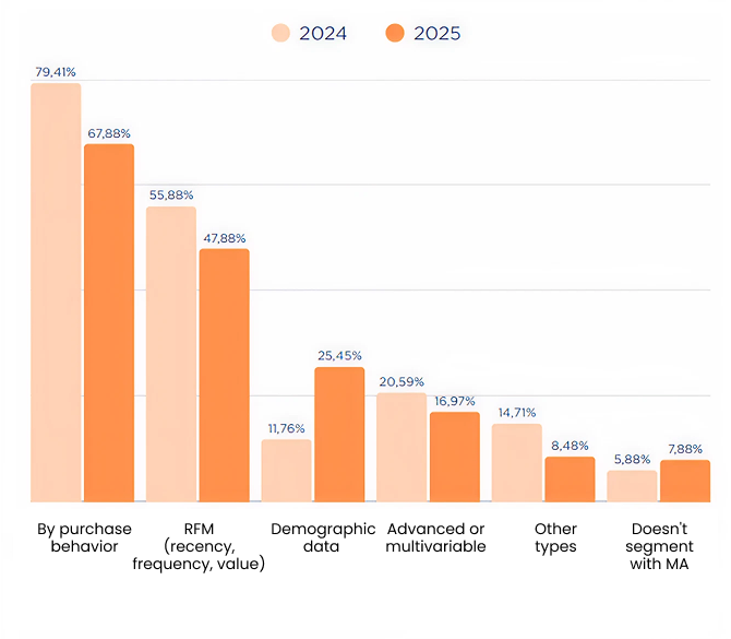 Segmentations such as RFM – although down slightly from the previous year – are still the most widely used, because they show you at a glance which customers are most likely to repeat a purchase, who is losing value or who might spend more if given the right incentive.