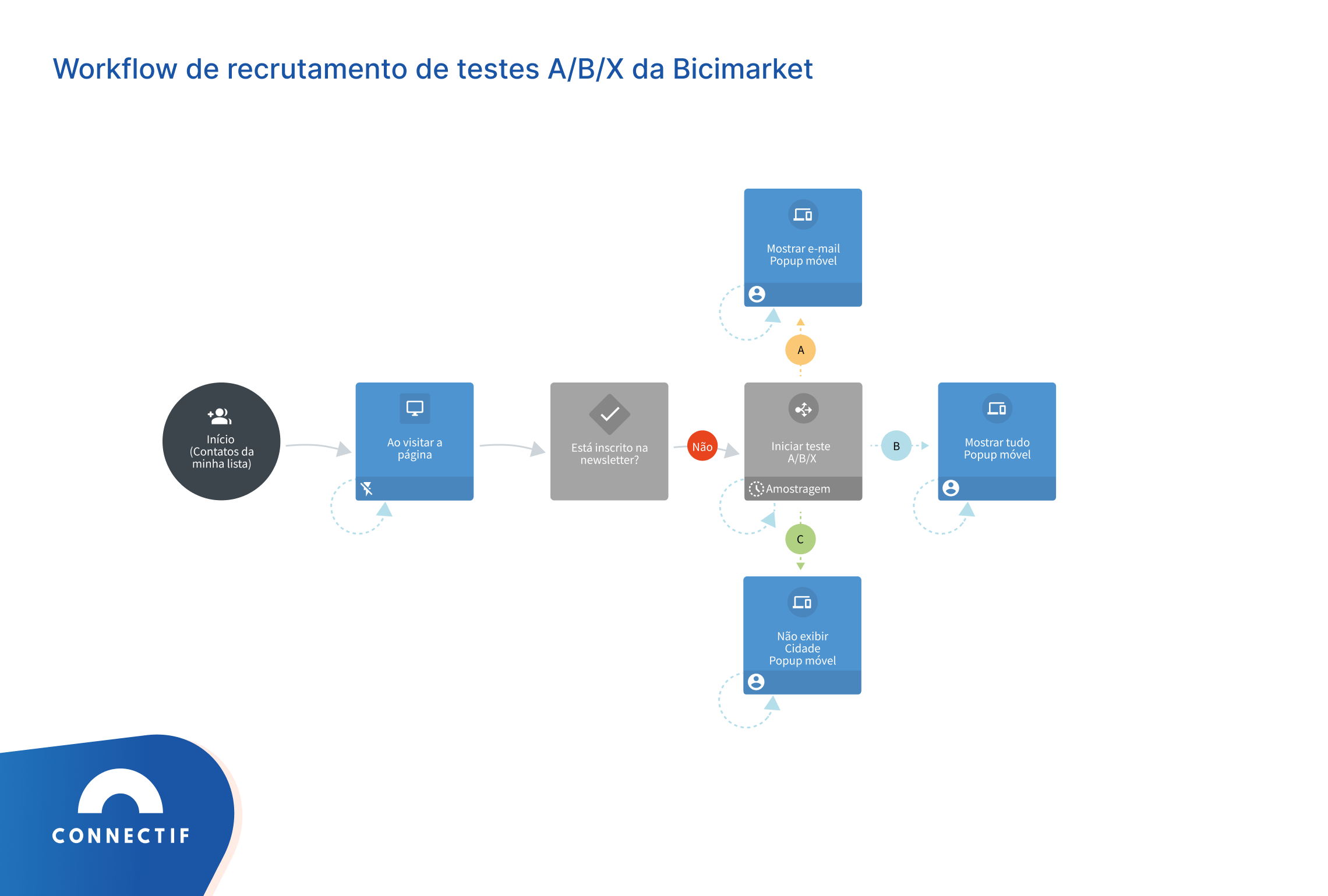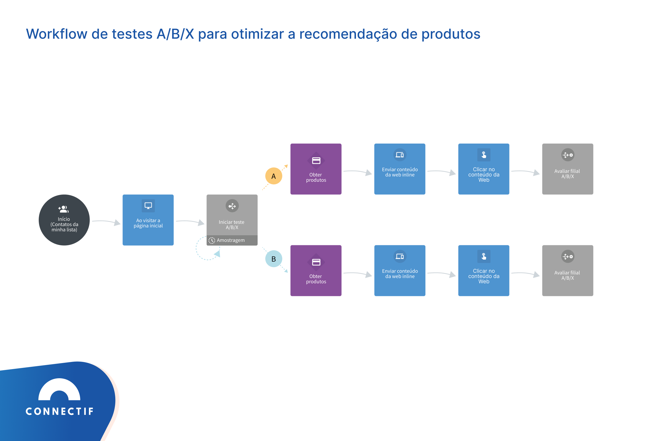 Embora o Connectif seja reconhecido principalmente como uma plataforma de automação de marketing para profissionais de marketing orientados por dados, vale a pena explorar os recursos de teste disponíveis em nossa plataforma. Com acesso a uma grande quantidade de dados de clientes e canais, as possibilidades são realmente infinitas quando se trata de otimizar suas estratégias de marketing ou testar algo novo com o Connectif.
