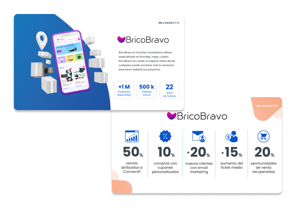 - Workflows estratégicos y ejemplos de contenidos omnicanal enviados a los clientes de BricoBravo.