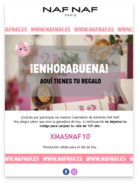 NAF NAF es una marca de ropa Parisina nacida hace 50 años. Siendo referente en la moda, tiene como objetivo vestir a las mujeres de una forma que las haga sentir guapas y seguras de sí mismas. Su misión es empoderar a las mujeres ofreciéndoles una experiencia difrente, única y original.